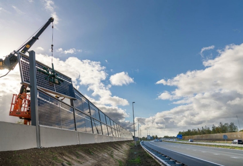 Solceller som støjværn langs motorveje