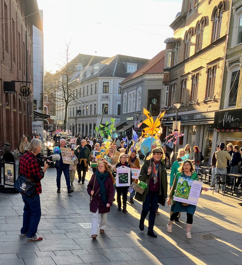 Planetparaden på Overforbrugsdagen i Odense blev fulgt af Odense Ser Rødt. De har lavet en meget fint og oplysende indslag om begivenheden. Se den her: https://osrtv.dk/ “Alle sammen sammen.” Der findes også positive tippingpoints, og skal vi ændre på Titanics blinde kurs mod isbjerget, må vi holde ud og tro uforfærdet på, at hver mikrohandling, hvert grønt ord, hver samling bidrager til at vende skuden. Vi håber vi ses igen på Jordens Dag den 22.april-på Flakhaven i Odense kl 15-17. Tusind tak til Odense ser Rødt . For at give begivenheden Overshootday fuld og positiv opmærksomhed. Og tak til alle jer, der gjorde dagen farverig og dynamisk. 🌍🌍🌍🌍🌍🦋🦋🦋🎼🎼🎼 Interesse for at være med i den nystartede Odense Klimakor-Klimastemmer, så skriv til Inge Koret er åbent for alle interesserede. Du behøver ikke at være medlem af Klimabevægelsen i Danmark for at synge med. Vi øver den første tirsdag i måneden fra kl. 17-19 på Odense Katedralskole. Næste gang er 7/4. Skriv til Inge, hvis du gerne vil deltage: ifja11@gmail.com