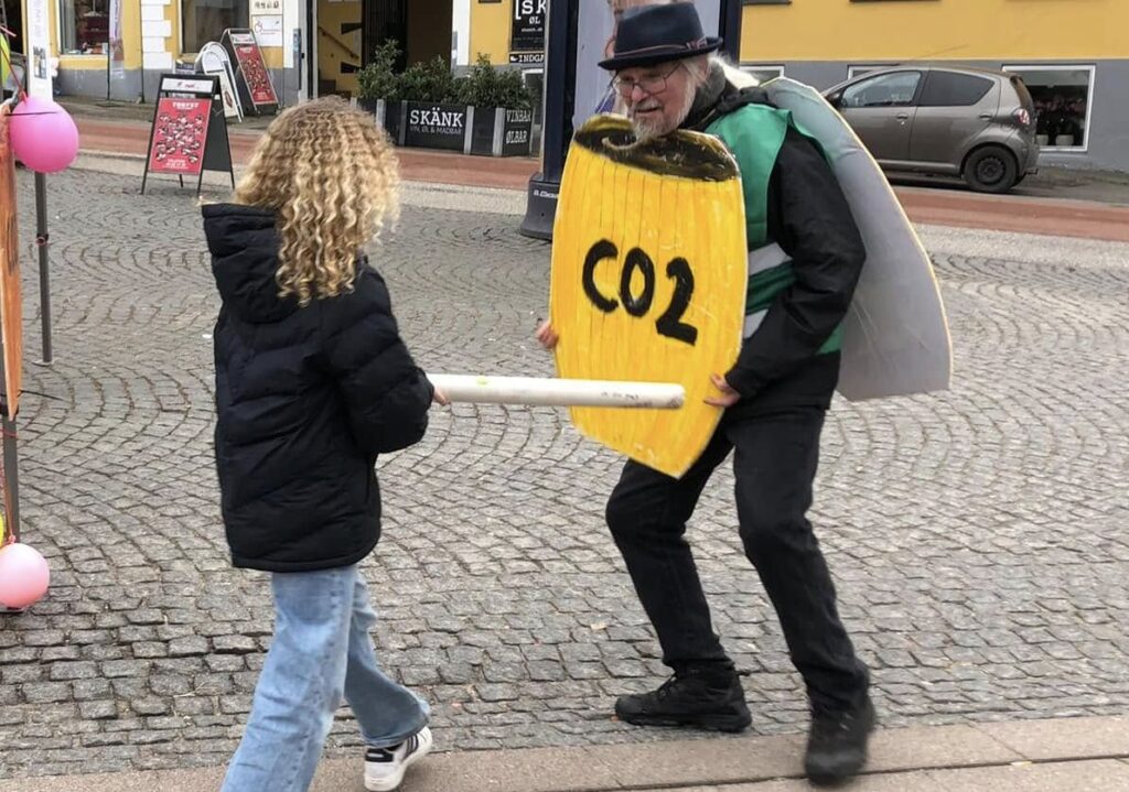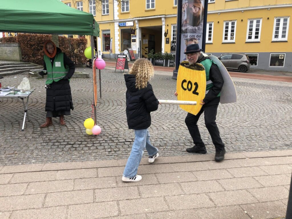 Så har vi været på Torvet for at markere Fastelavn med tøndeslagning: “kom og slå CO2-en ned” og synge klimasange.Hundekoldt og ikke så mange børn på gaden! Utroligt hvad vejret betyder 🙂Og så fik børnene en ballon og en æske økologiske rosiner …….. fra Californien ….sic Vi delte også flyers ud med Borgerforslaget om at Hillerød kommune skal være klimaneutral i 2040 og det blev igen godt modtaget!Det varmer trods alt;
