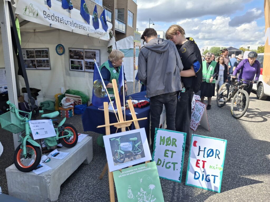Klimahandledagen i Hillerød blev anledning til at møde andre aktive i byen men selv var vi kommet frem til at forsøge noget nyt og gøre forsøg med kontakt på loppemarked i Skævinge som er en af kommunens byer.Så vi fik en bod Vi med klimaquiz, dukketeater og strik af afrevne lagener . Quizzer og møde med folk i ro og mag på loppemarked, var virkelig godt – folk havde tid til snak om klima.Det var quizzer med 3 sværhedsgrader og god mulighed for succes. – og mange var faktisk godt orienterede.
