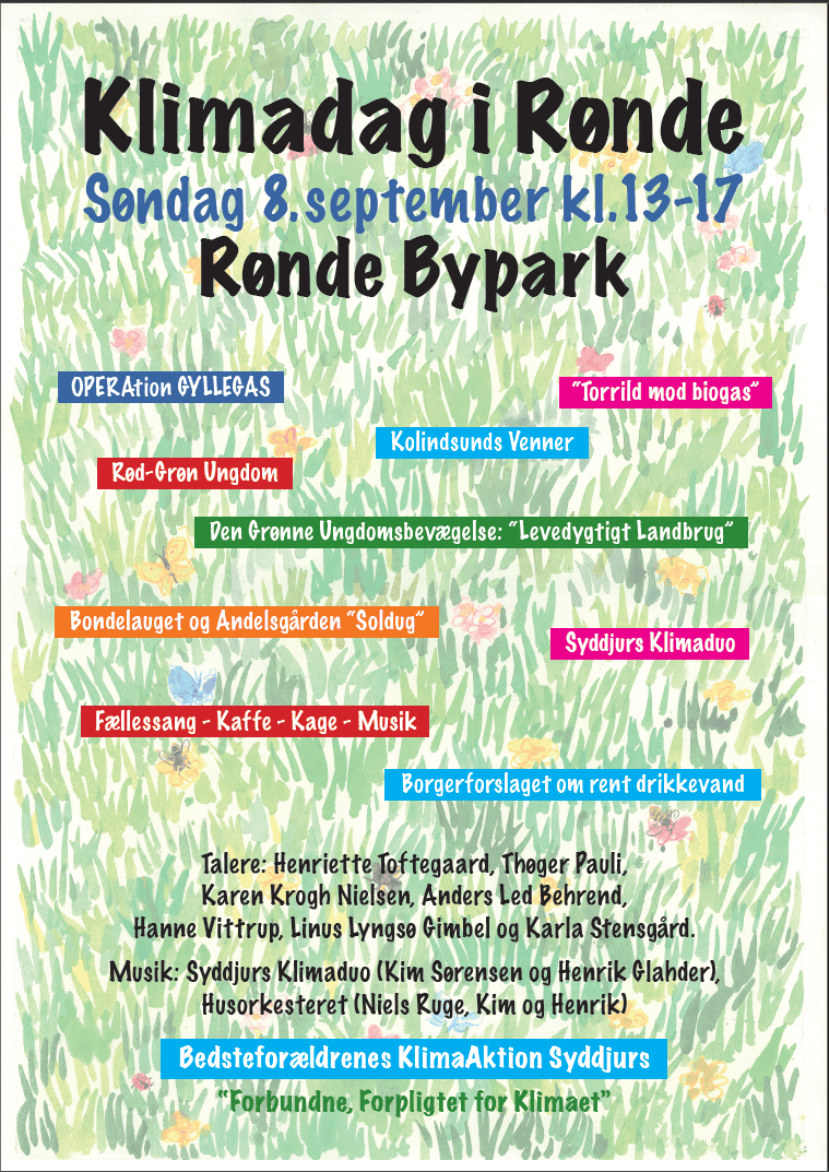 Igen i år arrangerer Bedsteforældrenes KlimaAktion en klimadag i Byparken i Rønde. I år med specielt fokus på gylle og biogas.