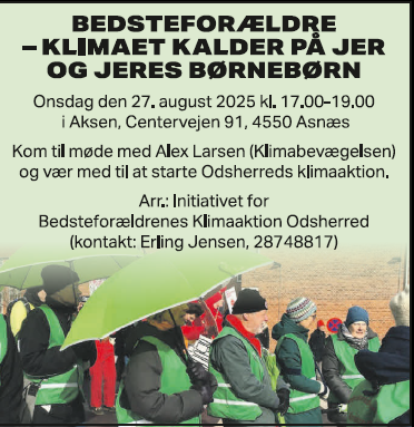 Nu har nogle bedster i Odsherred taget initiativ til et offentligt møde med det formål at stifte en lokal klimagruppe – måske som en BKA gruppe.