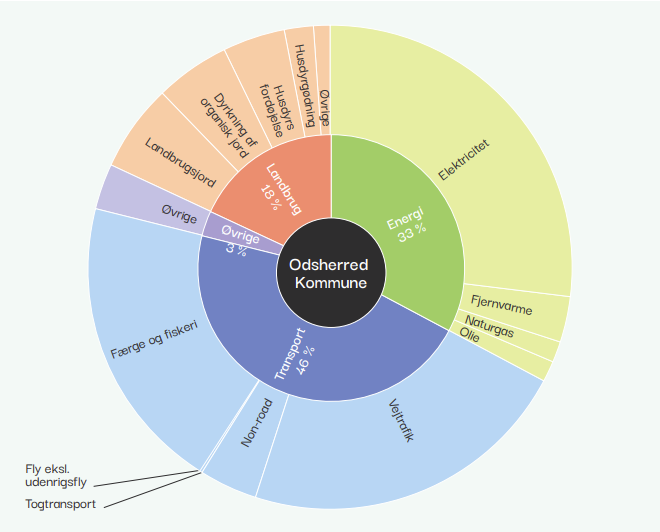 Nedenfor kan I se, hvordan udledningerne af CO2e fordeler sig i Odsherred